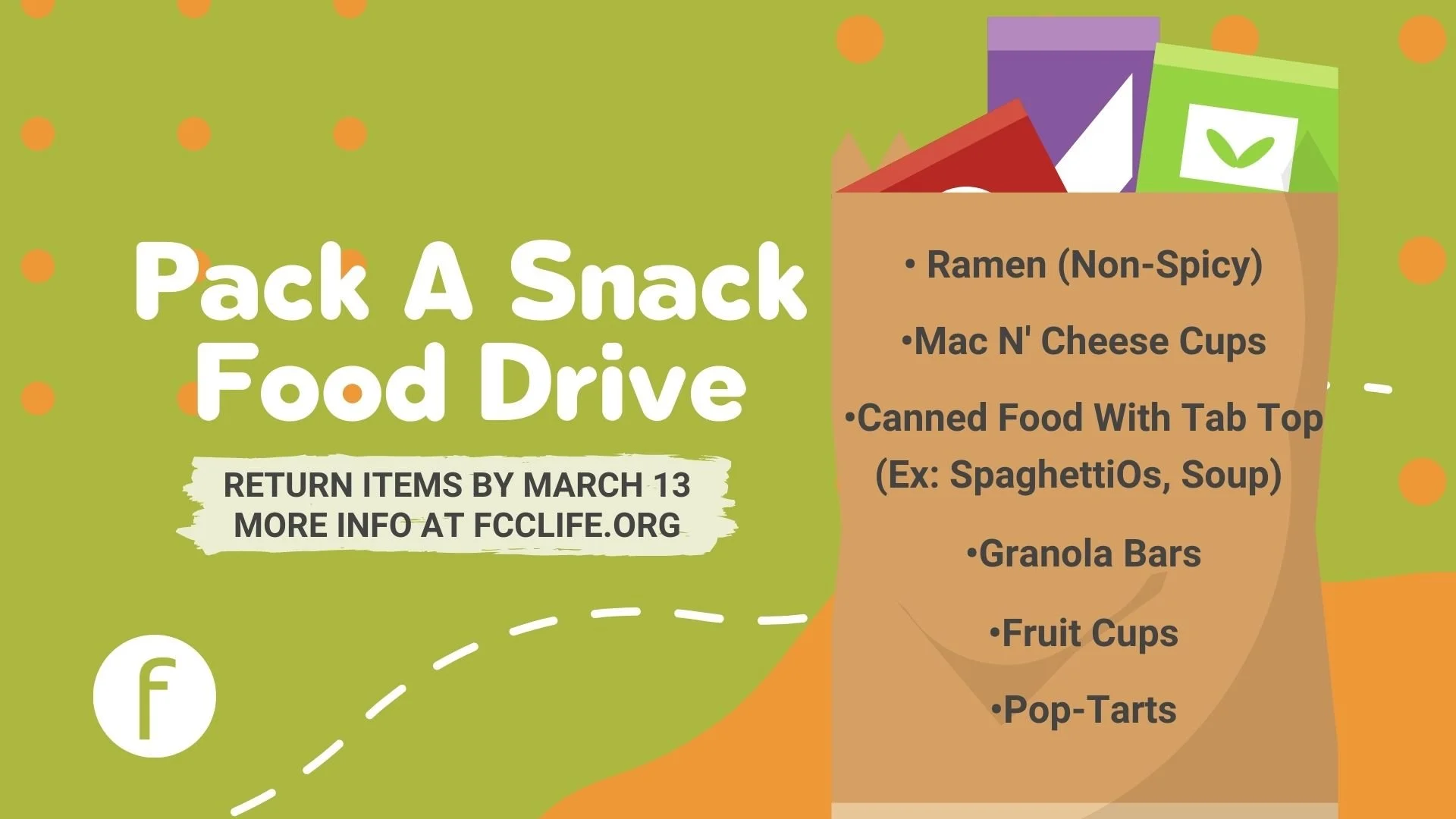 The Pack A Snack Food Drive is an opportunity for our campuses and online participants to come together and support our Pack A Snack families through the Serve Our Schools ministry. Every weekend, nearly 150 students across 5 schools are able to enjoy 3 small meals that they normally would not have because of the generosity of FCC!