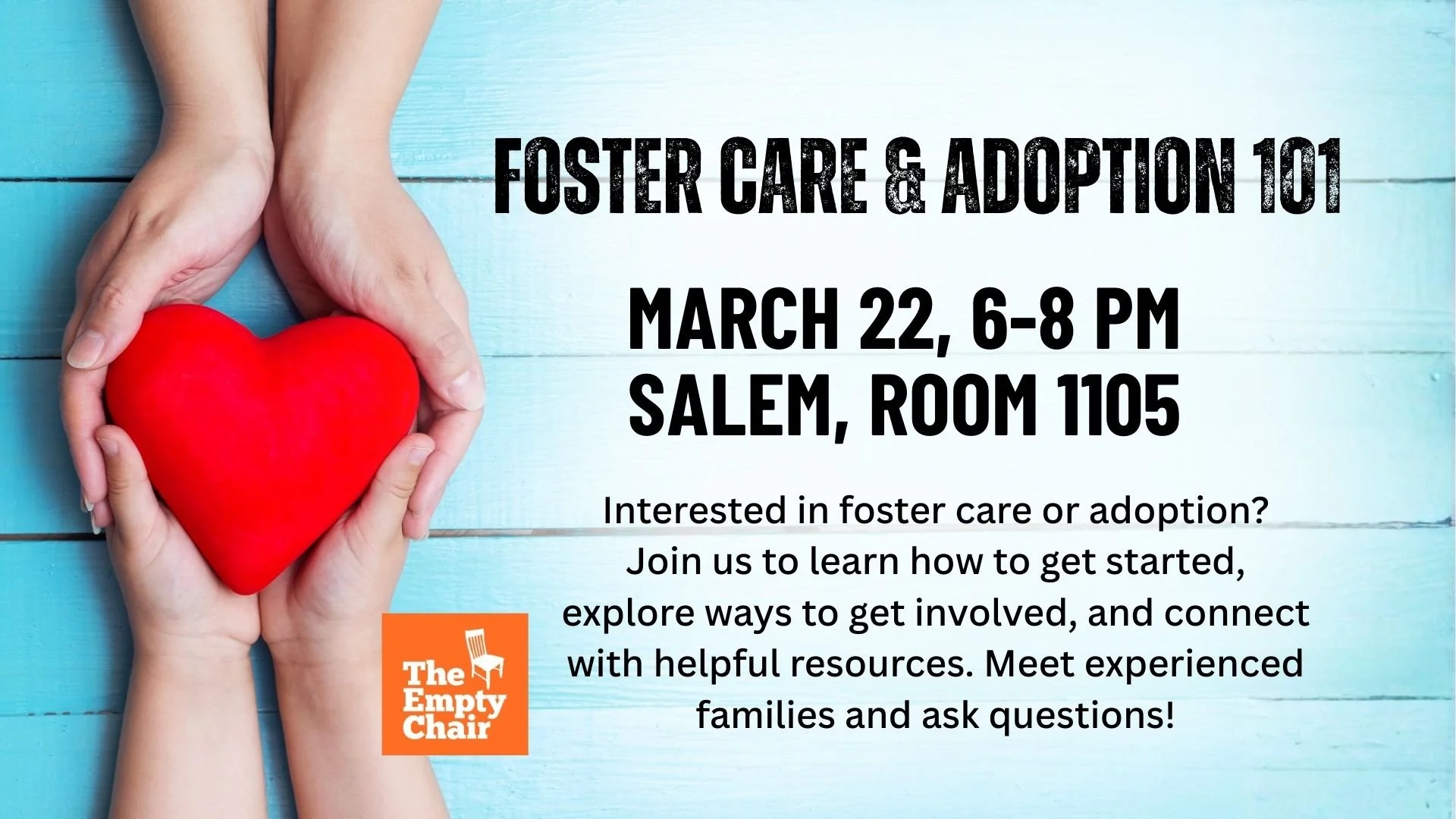 Interested in foster care or adoption? Join us to learn how to get started, explore ways to get involved, and connect with helpful resources. Meet experienced families and ask questions!