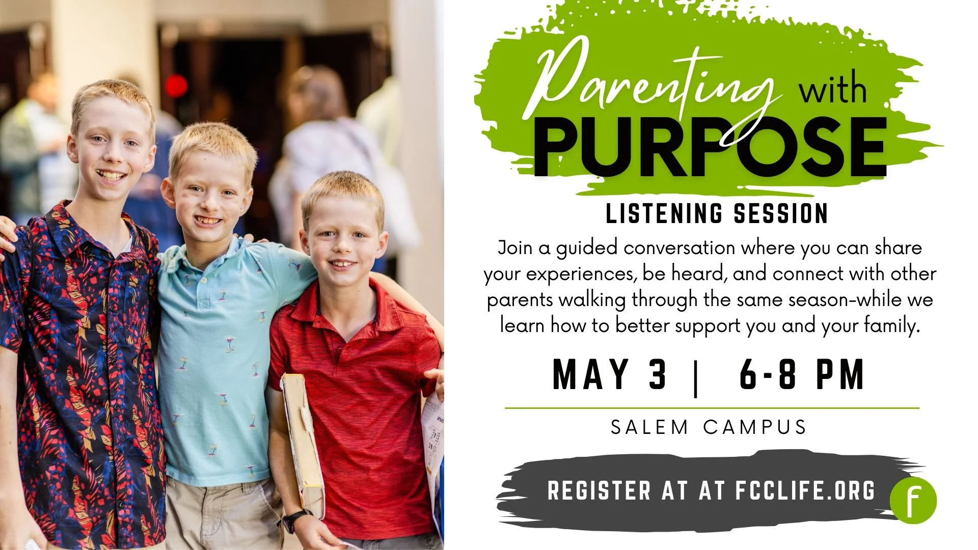 Parents from all campuses are invited to dinner and conversation as part of the Parenting with Purpose Listening Session, provided by the Faith@Home Ministry.